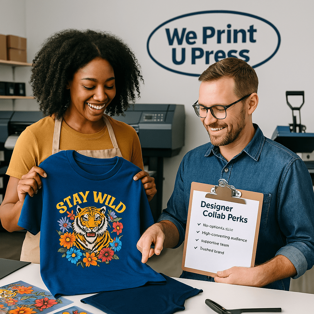 At We Print U Press, we deeply respect the creativity, time, and talent that goes into every design. We never share, resell, or release the original digital artwork submitted to us by collaborating designers. Your work remains yours—always. We also strictly follow copyright and trademark laws and will never print licensed, trademarked, or copyrighted characters or logos without proper documentation and authorization from the original brand owner. Our goal is to support and protect creators, not compromise their intellectual property.