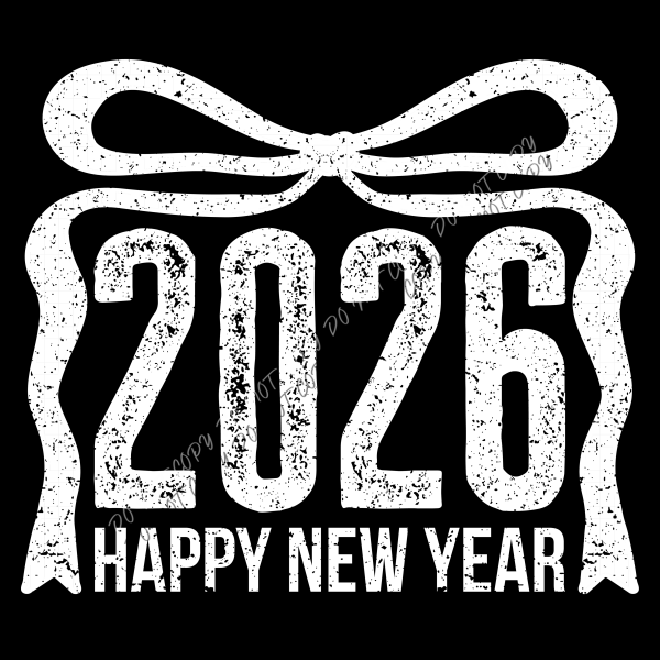 Keep it simple and stylish as you ring in the new year with the 2026 Happy New Year Distressed Bow White DTF Transfer — where classic meets cool.