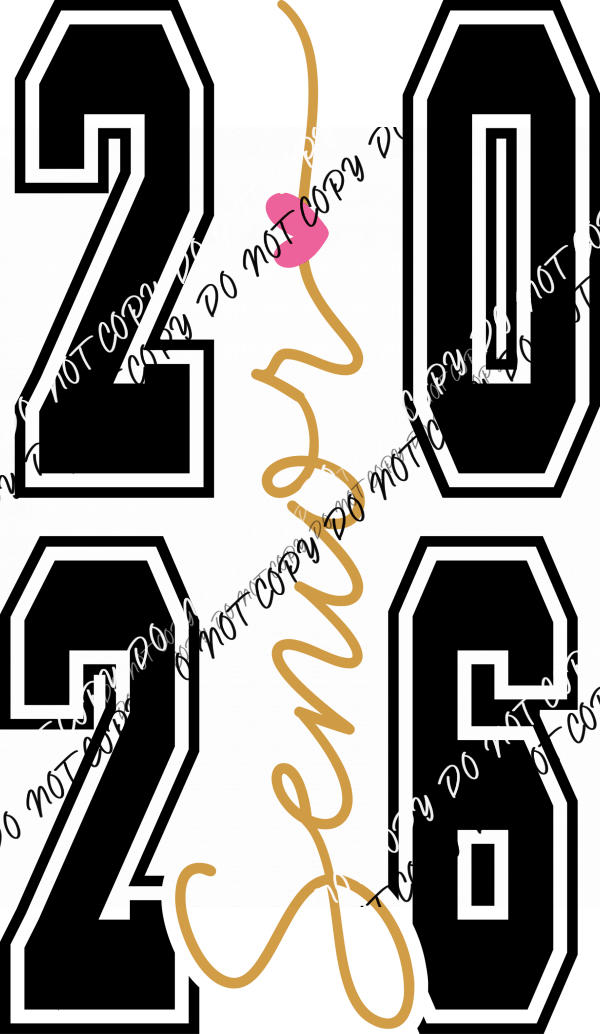 Make your final year unforgettable with the 2026 Senior Gold Script Heart DTF Transfer—a chic design for every proud graduate!