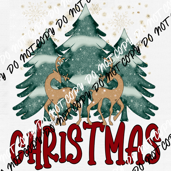 Christmas Trees with Two Deer DTF Transfer