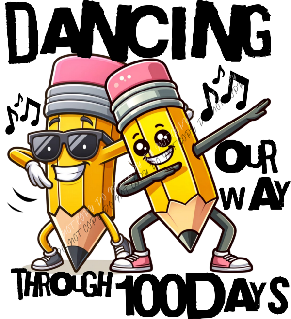 Bring fun, creativity, and confidence to the classroom with the Cool Pencils Dancing Our Way Through 100 Days DTF Transfer — a design that’s all about school pride with a playful twist!
