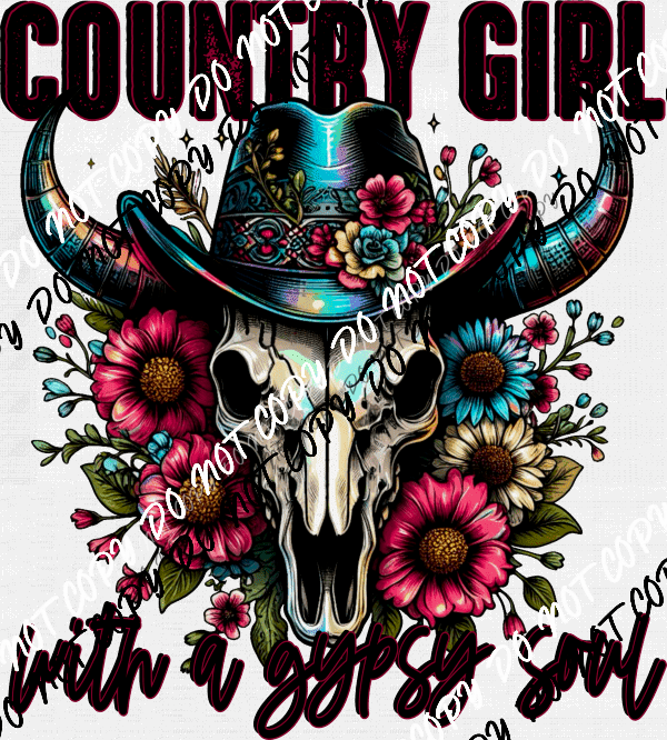 Country Girl with a Gypsy Soul Cow SkullDTF Transfer