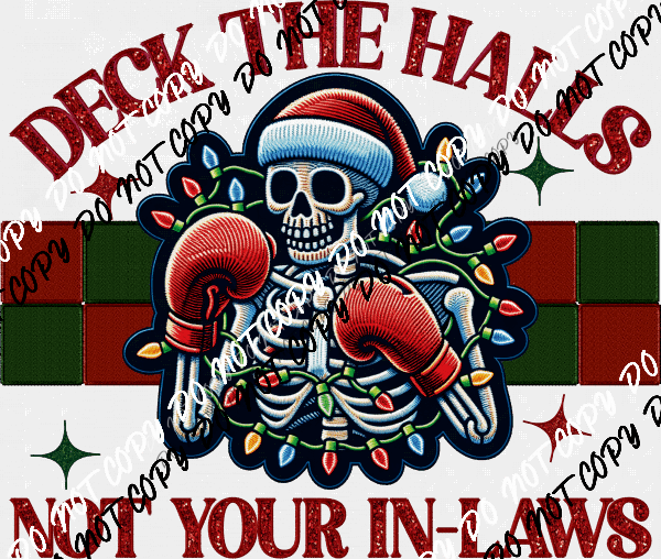 Deck the Halls Not Your In-Laws Skeleton Faux Glitter DTF Transfer