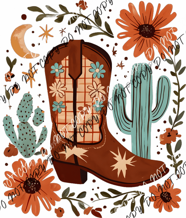 Floral Cowgirl Boot DTF Transfer
