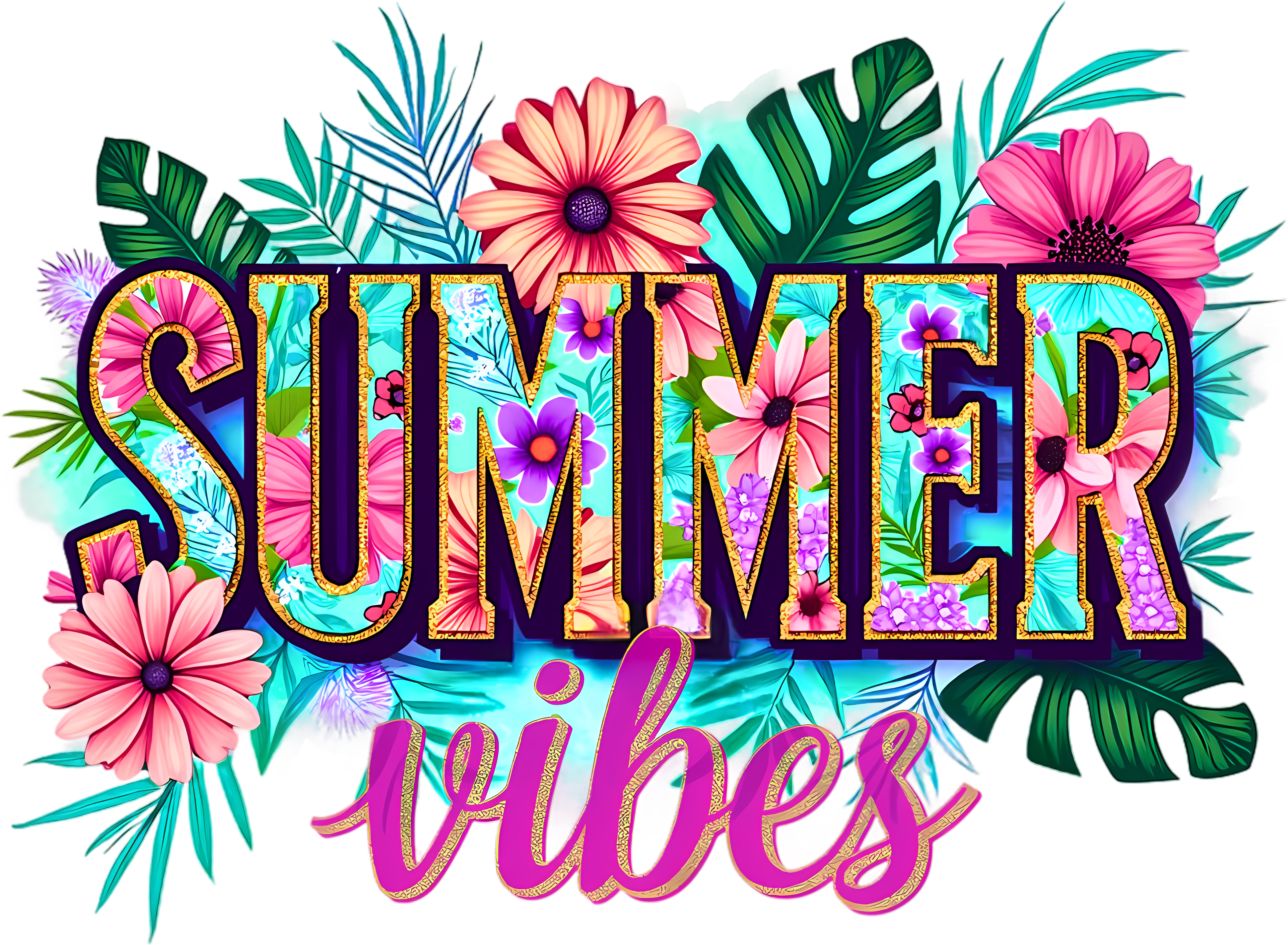 Turn up the color and bring the heat with our Floral Summer Vibes DTF Transfer. This vibrant design features bold tropical florals, lush green leaves, and eye-catching layered lettering with glitter-style accents that make it pop on any garment. It’s the perfect statement piece for boutiques, beach shops, and summer collections.