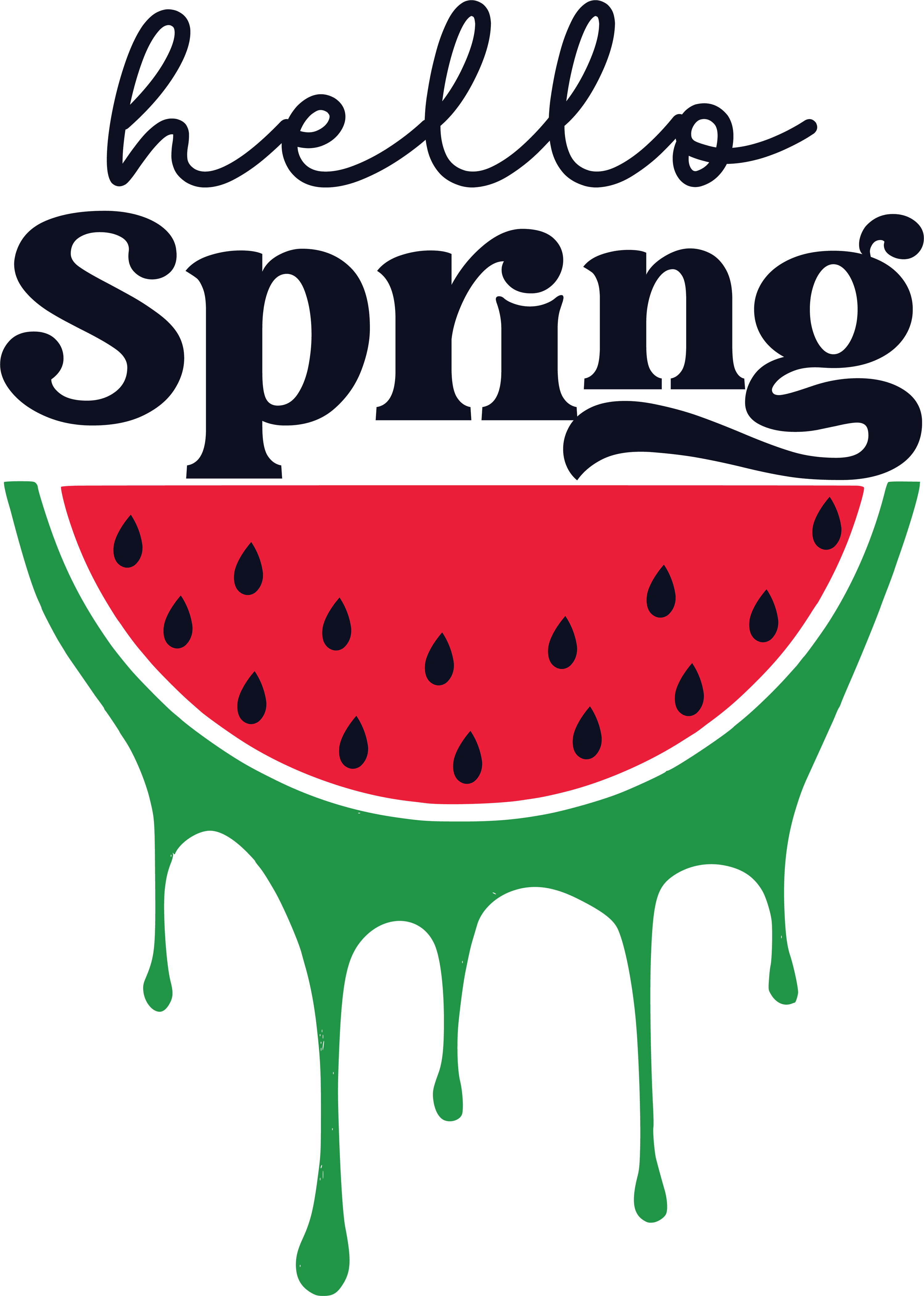 - Fun “Hello Spring” typography with watermelon graphic