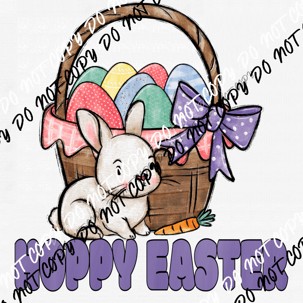 Hoppy Easter Bunny and Basket Purple Letters DTF Transfer