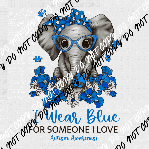 I Wear Blue for Someone I Love Austim Elephant DTF Transfer