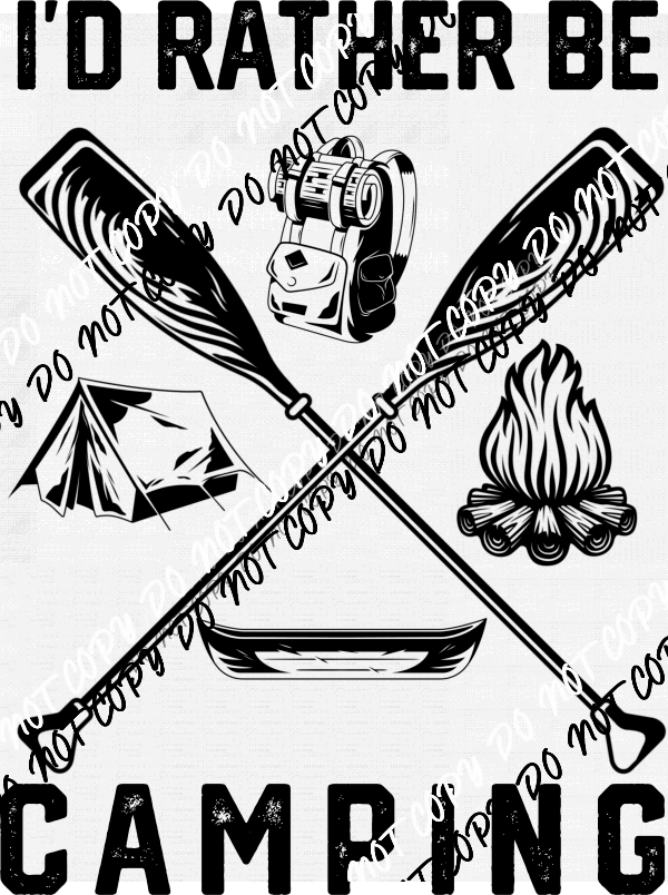 I'd Rather be Camping Black Print DTF Transfer