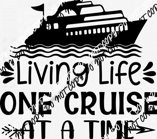 Living Life One Cruise at a Time DTF Transfer (Choose White or Black Print)
