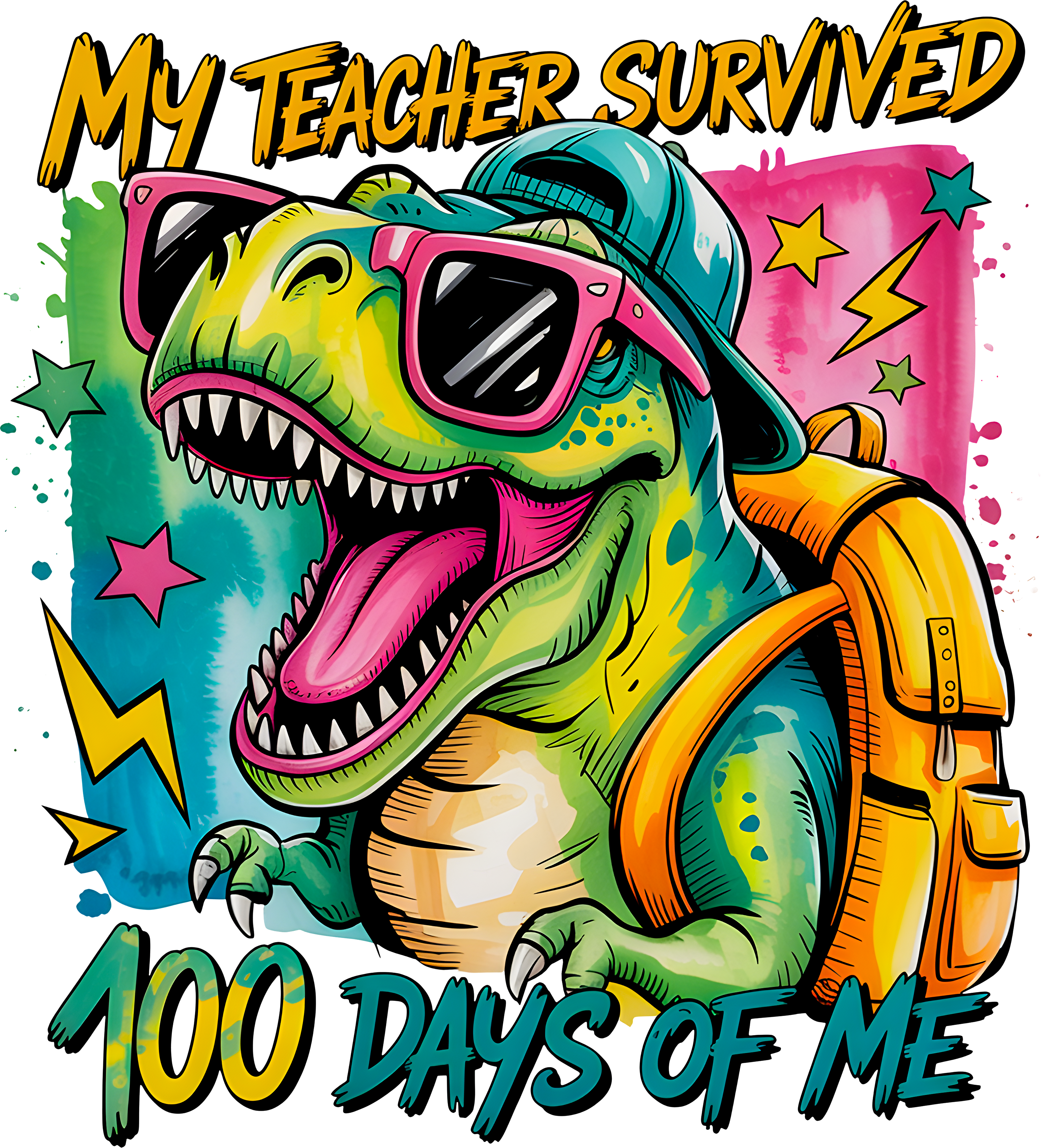 My Teacher Survived 100 Days T-Rex DTF Transfer