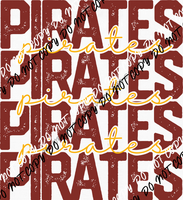 Pirates stacked burgundy and yellow distressed print dtf transfer