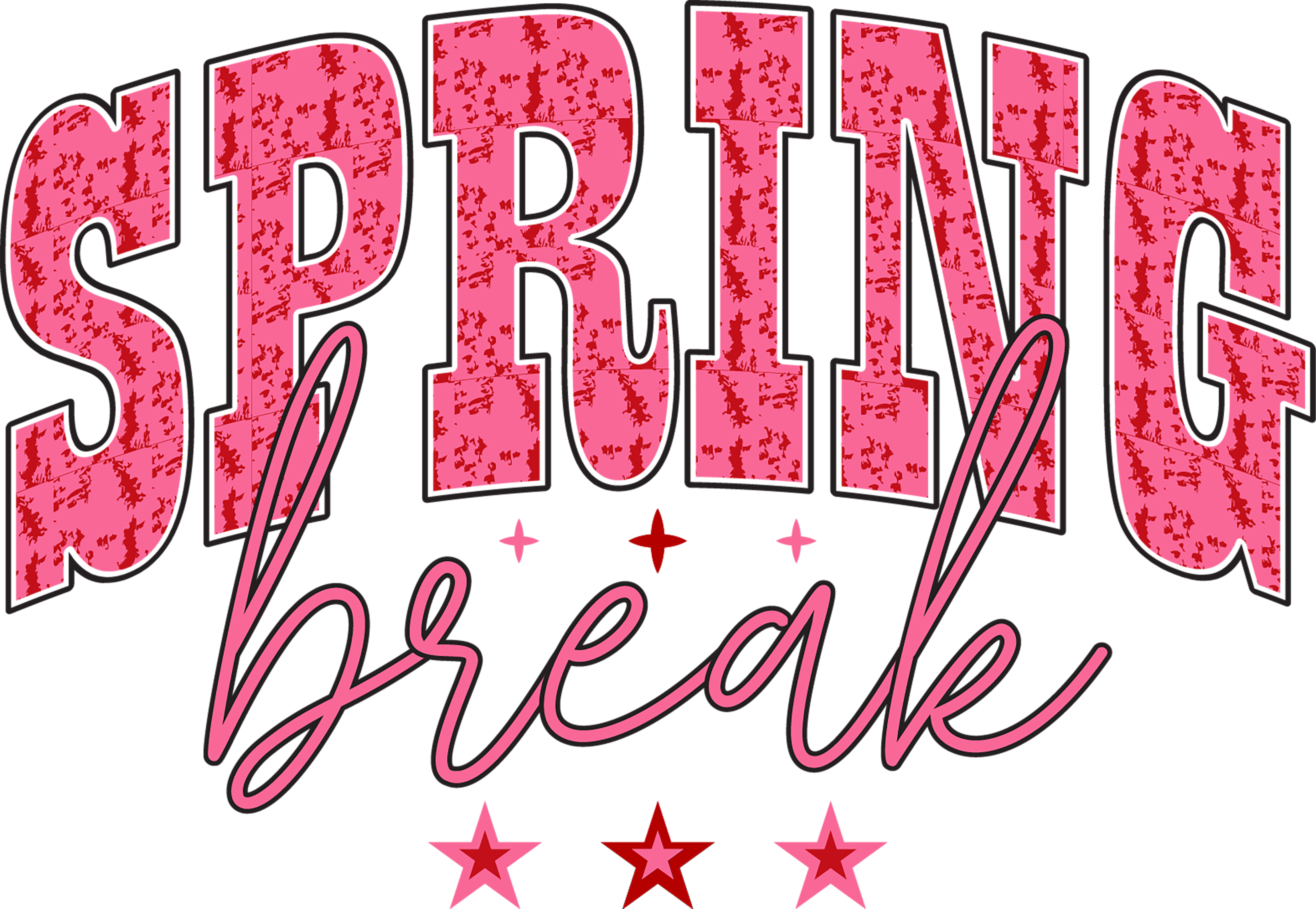 This Spring Break Pink Text design features bold varsity-style lettering paired with a playful script accent, all in vibrant shades of pink with a lightly distressed texture. It’s a fun, energetic design that’s perfect for standout spring break apparel and trendy seasonal collections.