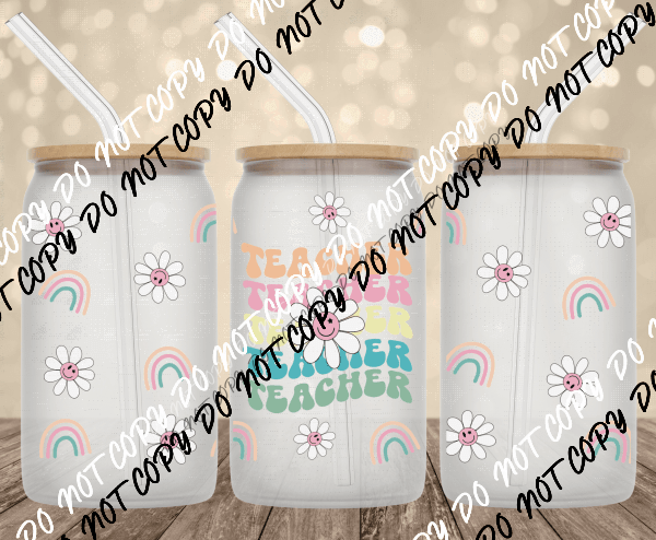Teacher Stacked UV Transfer for 16 oz Glass Can