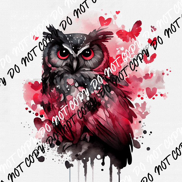 Valentine Black Owl Watercolor DTF Transfer