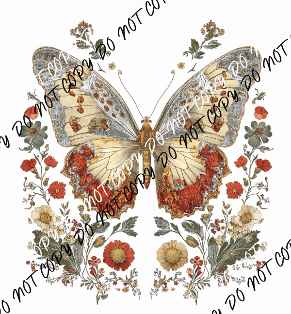 Vintage Butterfly and Wildflowers DTF Transfer