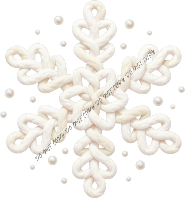 The Woven Snowflake DTF Transfer features a beautifully intricate snowflake design made to resemble soft braided rope or woven yarn. The creamy white texture gives this piece a cozy, elegant winter feel, while the subtle pearl accents add depth without overpowering the design.